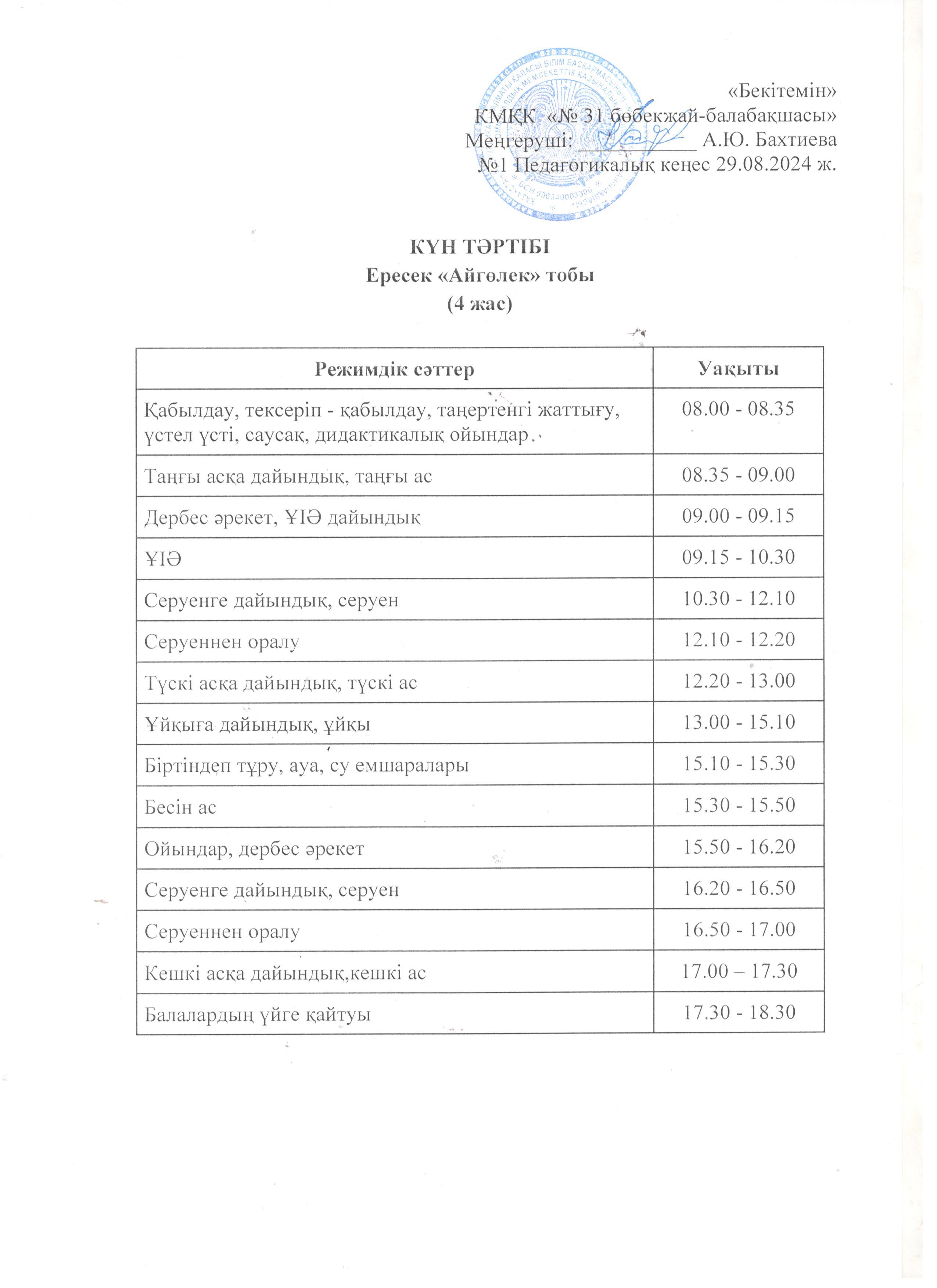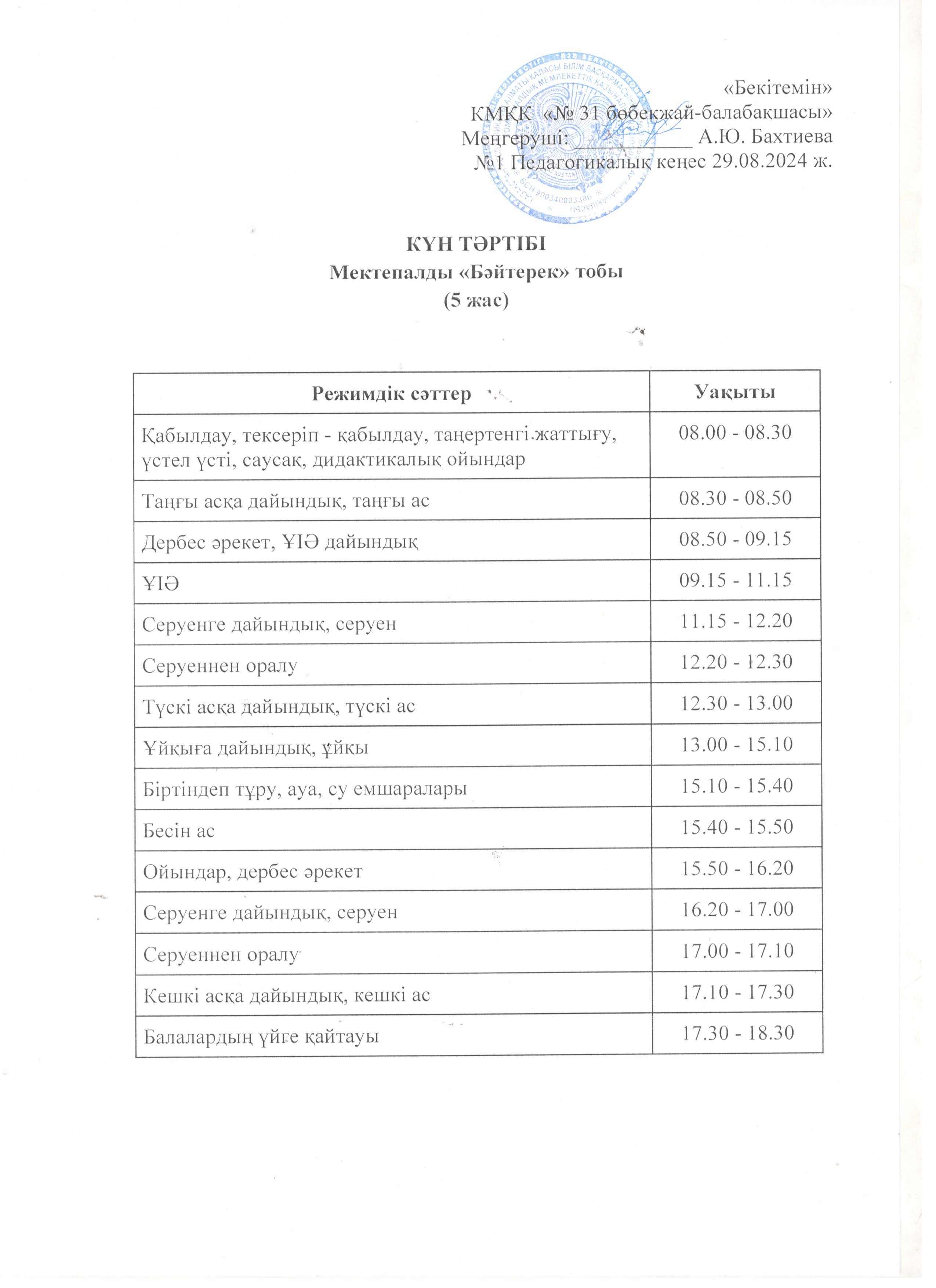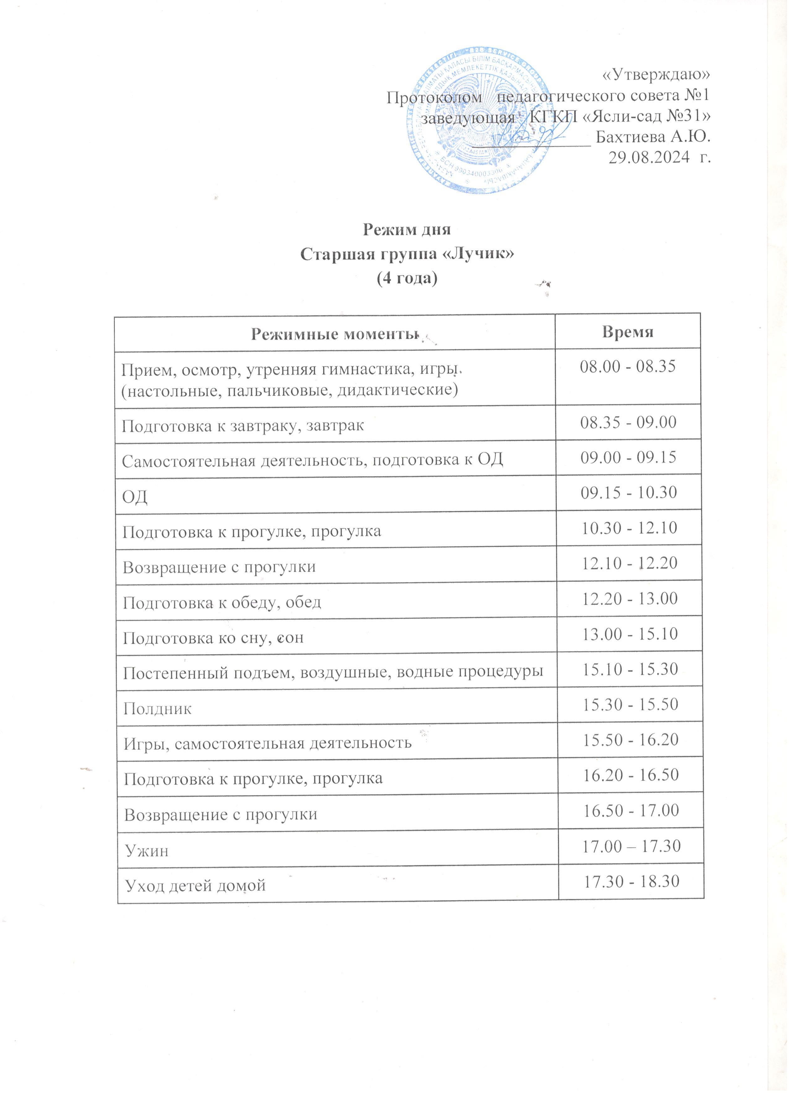 Күн тәртібі 2024-2025 оқу жылы » КГКП "Ясли-сад №31". Алатауский район