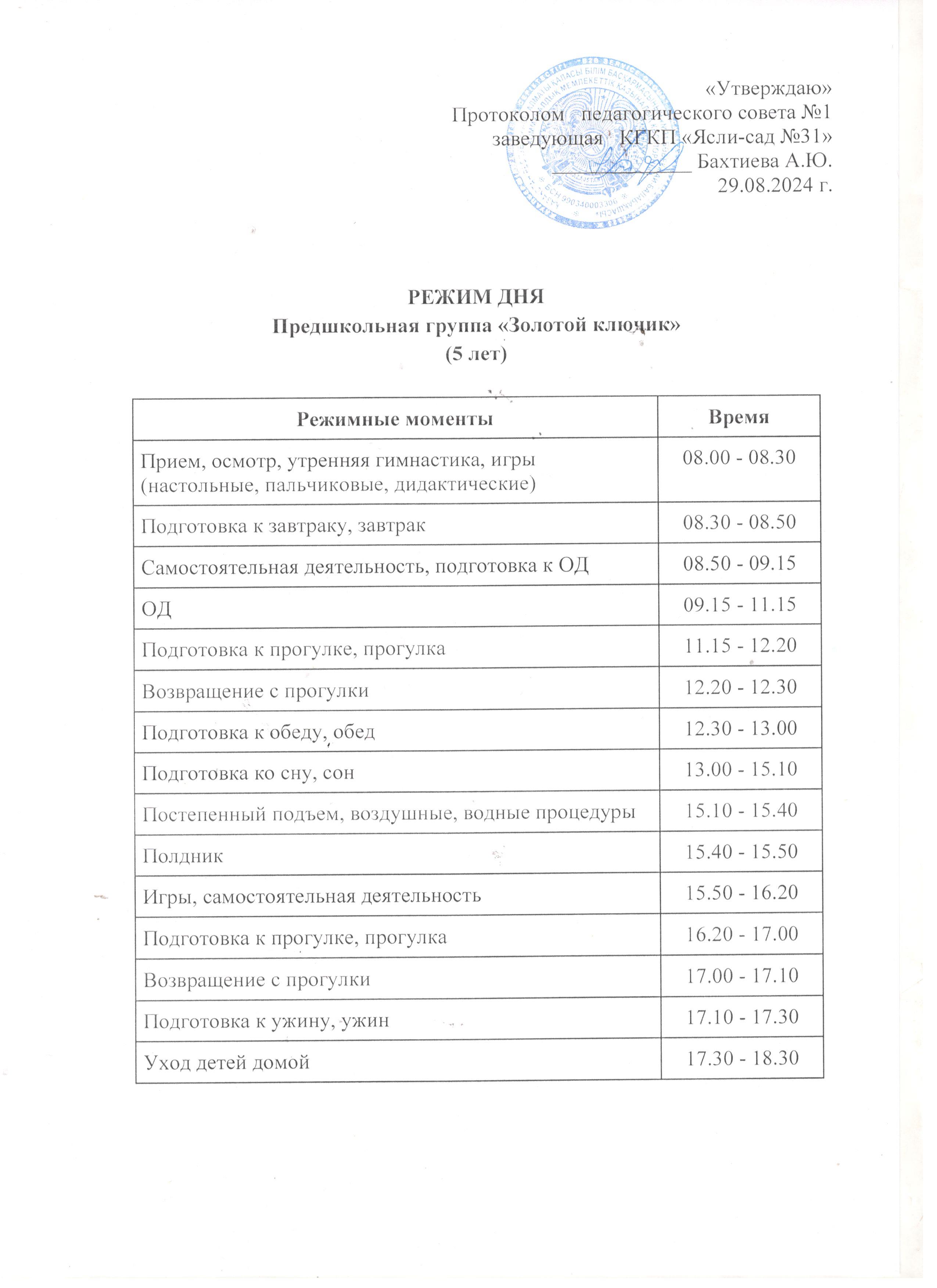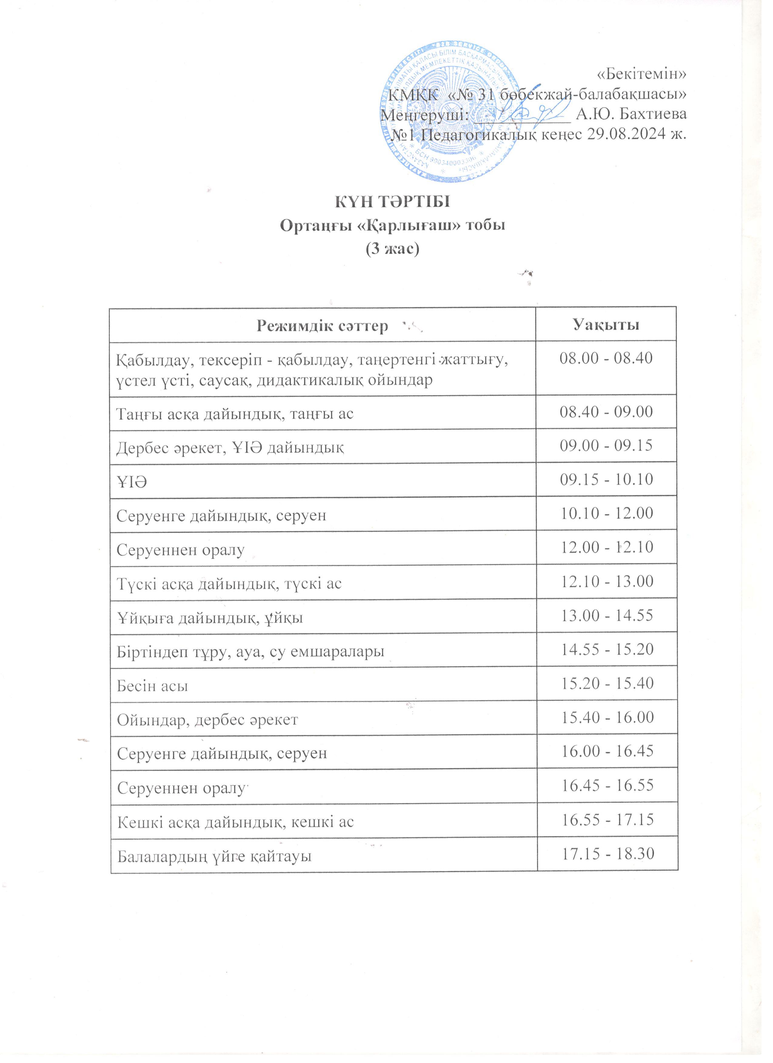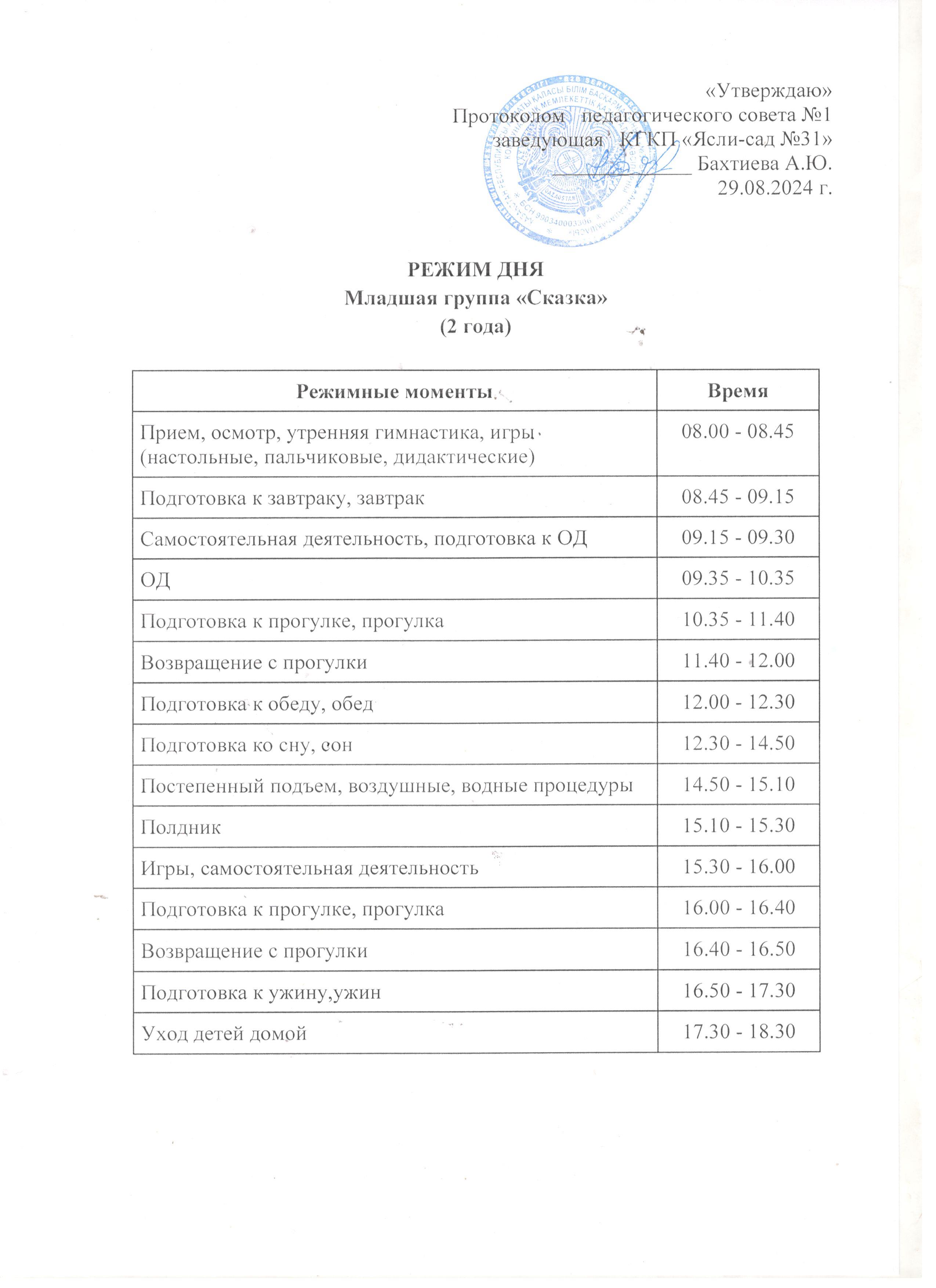 Күн тәртібі 2024-2025 оқу жылы » КГКП "Ясли-сад №31". Алатауский район